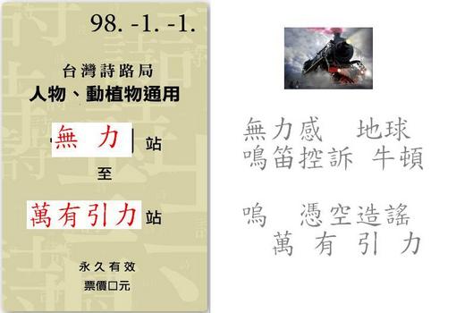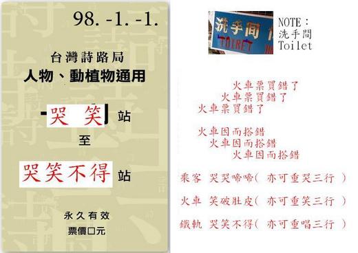 m ^ ^ m 嗼 ( 冬眠中 ) 於 2009/11/08 23:44回覆拿著買醋( = 錯 )的票 且也乖乖 依偎票 上錯車