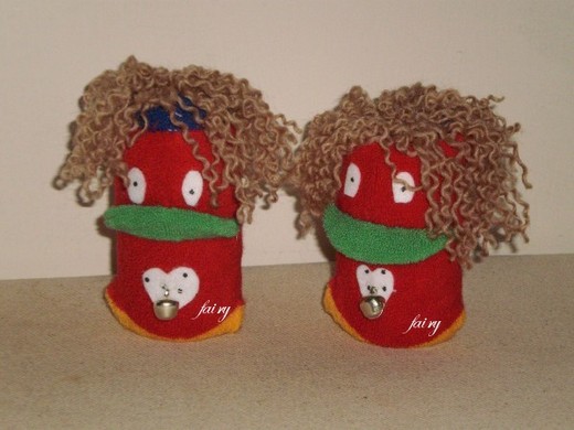 利用喝完雞精的玻璃瓶和毛線、襪子不同素材,碰撞出不同的火花。