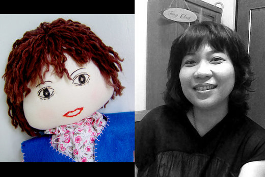 以前作的不是鄉村娃娃就是自己亂捏的怪怪黑豆娃和豆媽、痞子阿晃和哈拉,我家老爺和阿花妹,現在對外接案捏一個是家人以外的真人版娃娃,感覺----很特別。
