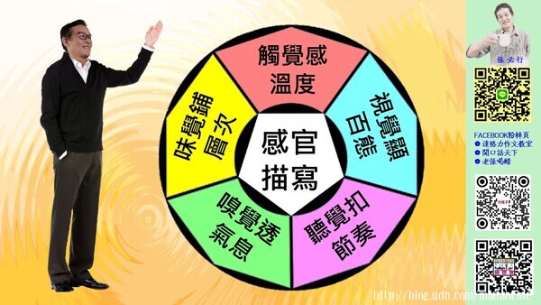 (1)說明:視覺是感官之首,但要避免平庸的顏色標籤。應觀察光影的變化、色彩的飽和度與對比,利用鮮活的色澤來暗示氣氛。透過色彩的明暗與層次,能勾勒出極具畫面感的場景,讓文字變成電影鏡頭。