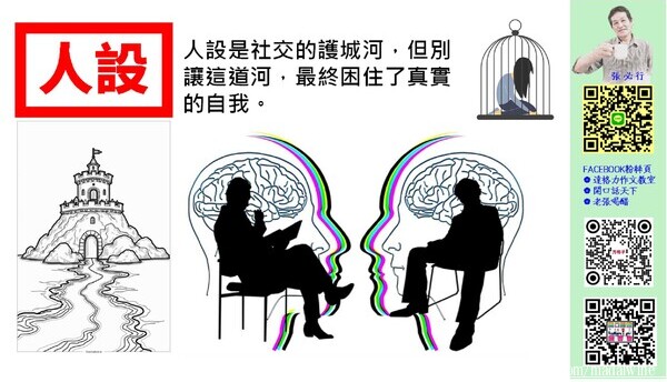 在這個網路發達的時代,「人設」變成了一種流行的詞彙。很多人在網路上或在學校裡,都會幫自己設定一個完美的形象。有人覺得自己是「高冷學霸」,有人覺得自己是「幽默大王」。我認為,人設就像是一道護城河,雖然可以保護我們,但如果蓋得太高,反而會把自己關在裡面。