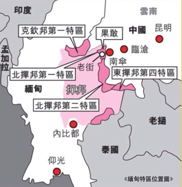 緬甸撣邦東部第四特區於1989年6月30日成立,位於撣邦高原東北部邊陲,東北面與中國西雙版納毗鄰,面積為4952平方公里,人口81500多人,居住著愛尼族、撣族、布郎族、佤族、果敢族、及緬族等13個民族,轄猛拉、南邦、色勒3個地區。特區首府猛拉和雲南省邊陲重鎮-打洛僅數里之遙。東面隔湄公河與老撾民主共和國相望,東南面與泰王國相鄰。