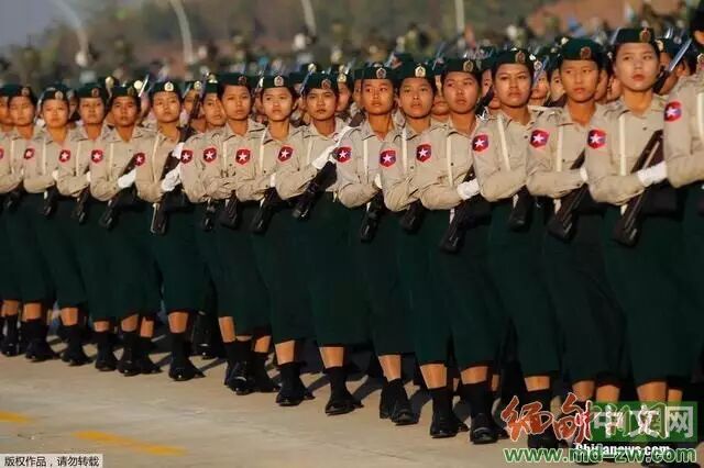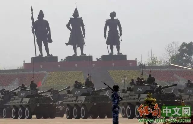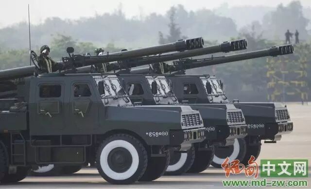 21/27缅甸军队装备中国制武器一直都有传统。随着中国军工制造新型武器能力的不断增强,对外出口的武器档次也上来了。本图集中缅甸举行的阅兵式上,SH-1 155毫米车载榴弹炮、新型100毫米轮式突击炮、大量97式外贸步枪全都亮相了。