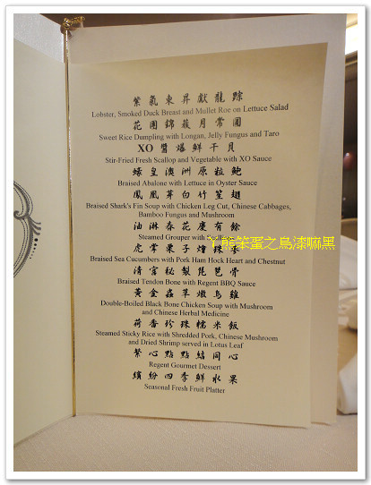 小布的訂婚宴選在晶華酒店,五星級餐廳的服務沒話說,每一桌都有桌邊服務,只要菜一上桌,服務生會把那一盤菜餚分成一人一份,放在中間的圓桌,自行取用。服務生已將菜分好一人一份,我覺得這種服務很好,不用擔心某一道菜自己拿太多不好意思,我還蠻喜歡這種服務的。