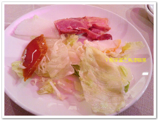 有鴨賞、烏魚子配白蘿蔔跟龍蝦沙拉,鴨賞味道還不錯;烏魚子配白蘿蔔口味顯的清爽;龍蝦沙拉的生菜清脆,龍蝦肉鮮甜,但我不愛美奶滋。