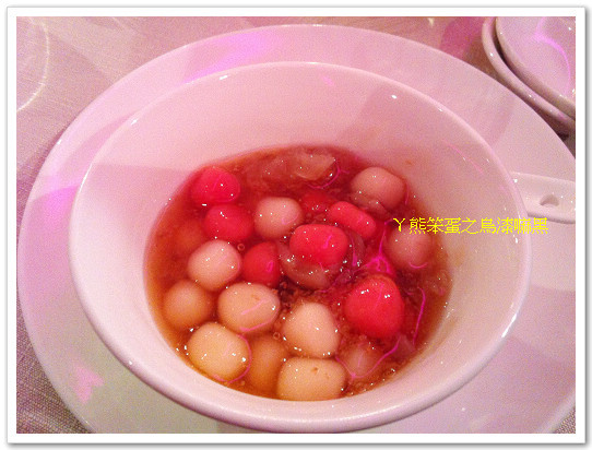 用桂圓跟白木耳熬成的湯底,再加上紅白湯圓,湯濃稠但不甜膩,湯圓QQ的。