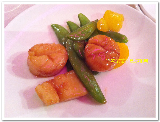 這道菜除了生干貝之外,還有甜豆跟彩椒,加XO醬下去爆炒。口味重了點,但超大顆的干貝超好吃的,豆子也很甜。