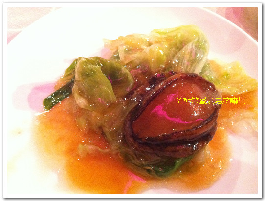 整顆的鮑魚,口感QQ的有彈性,吃了會彈牙。但整顆鮑魚,總覺得要用刀叉,用筷子夾,總覺得怪怪的。