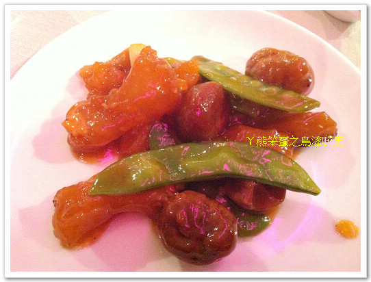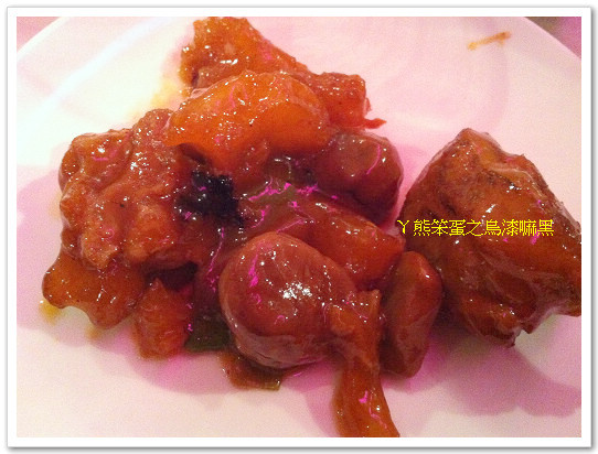 這道菜有海蔘、蹄筋、火腿跟栗子,看到海蔘就直接跳過,只吃栗子而已。