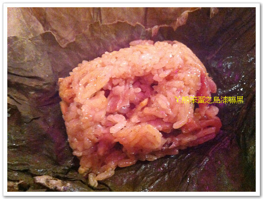 糯米飯的荷葉香氣夠,豬肉、香菇跟蝦米雖然沒有很多,但糯米的味道夠,且米飯Q彈好吃。