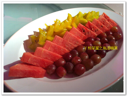 水果是楊桃、西瓜跟葡萄,楊桃跟西瓜都很甜,葡萄沒吃但品質看起來還不錯。