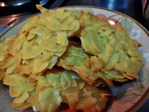 現在是近夜十二點,本來不餓,但看到韶關做的杏仁薄片,