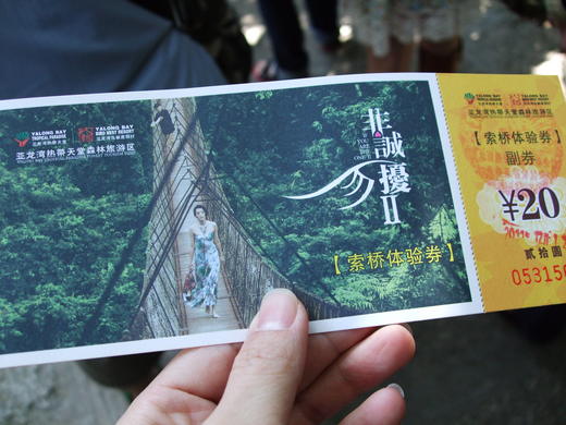 亞龍灣熱帶天堂森林公園是電影<非誠勿擾II>主要的拍攝場景,當地到處都可以看到曾經拍攝點的指標與入口處、候車處的電影海報,片中男女主角都要走過這條名為<過江龍索道>的吊橋,才能回家。
