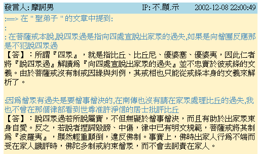 摩訶男一世認為可以宣說四眾過卻拿不出經文依據