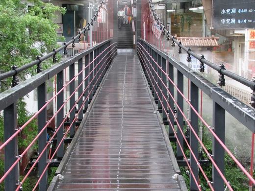 閃閃躲躲小心翼翼,終到了廬山吊橋旁。