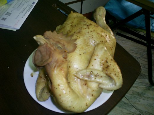 等到晚上,就有好吃的雞上桌了。
