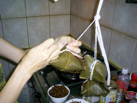 這次我應應景的只包一串20個粽子,由於家裡經濟欠佳,只包給自家人享用,今年我就不再送禮了。