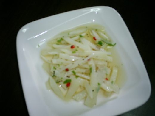 輪到新莊表姊家作客時,她請我們去一家港式餐廳用餐,在等候上菜時,我品嚐到一道清爽可口的小菜,我問服務人員,這是否是馬鈴薯?果然,我的嘴還是挺利害的。