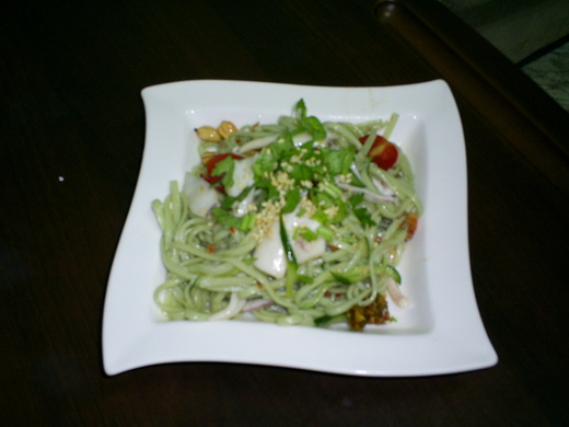 如果不是連日來的大雨,驟降了嚴熱的溫度,做菜的選擇必定非涼拌菜莫屬,突發奇想:做冷麵來吃吧。把冰箱裡的剩菜拼湊來吃。