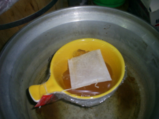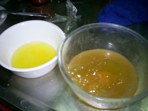 小孩就寢前,我就取出一杯量的雞精凍,加上一包的人蔘粉溫熱了給小孩飲用。