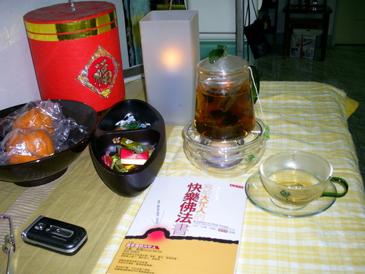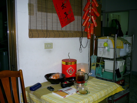利用大掃除時更動了一點位置,原本的移動式餐桌都放在角落擺放雜物,這次突然有了靈機一動,想說推到客廳的某個角落,不用時就當成裝飾,想用時就可以展開大一點的位置,點一盞桌燈、泡一壺花茶,然後攤開今天去逛書店買來的書,優閒地伴著輕柔音樂,感覺心裡很恬靜,跟在咖啡館看書時一樣呢。