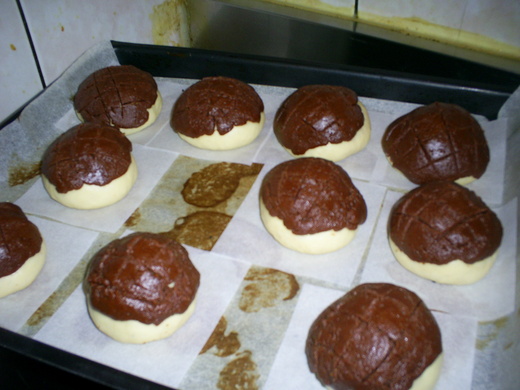 我還做了兒子喜歡的巧克力菠蘿肉鬆麵包。