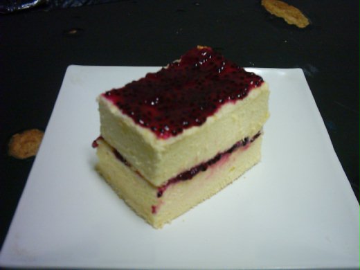5.上火200度/下火150度 烤40分,取出去邊切成方塊。夾層可以抹上上次做過的火龍果果醬,上層也一併點綴。