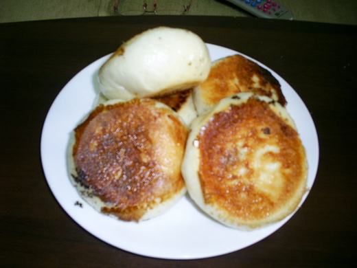 這次做的水煎包是準備當早餐,為了可以現做現吃,我在昨天就先桿好皮包好餡料。之前做過的水煎包常跟餡餅有點搞不清楚,後來去黃昏市場買菜時,故意經過賣水煎包的攤位,很詫異他們的水煎包個個都是白白胖胖的大個兒,似乎有經過發酵過的包子。於是我就先做成包子,只不過包子是蒸的,我把它先兩面煎黃後再加麵粉水蓋鍋蓋,等候麵粉水收乾就好了。