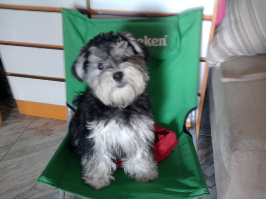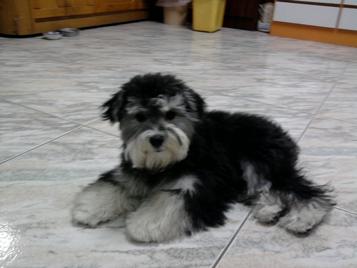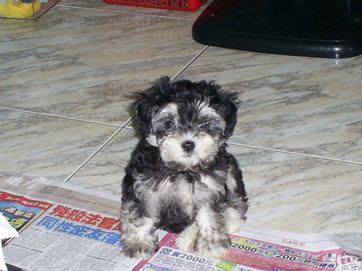 迄今也跟著我們經營小吃店的歲月有4-5個月了,從小還看不出長相以為是雪納瑞品種的牠,漸長也慢慢分出來是雪納瑞跟馬爾濟斯的混合品種。