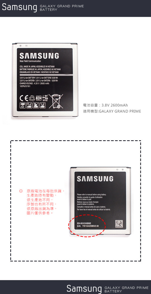 【開箱】SAMSUNG GALAXY J5 - Grand Prime G530專用 原廠電池 (密封袋裝)