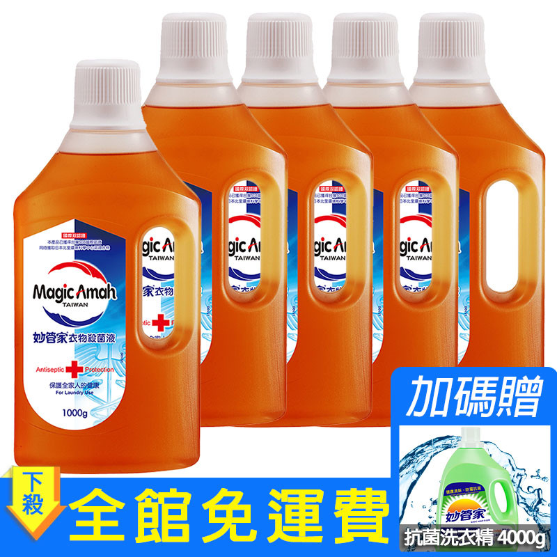 妙管家-衣物殺菌液(松木清香)1000g*5瓶(加碼贈:抗菌防霉洗衣精4000g*1瓶)