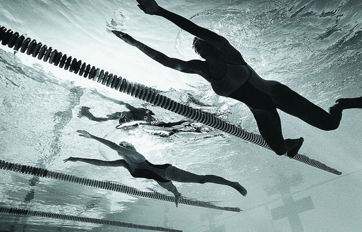 6.夾浮球(板)練習:雙腳夾住浮球(板),使身體呈水平狀態,依序練習划手及換氣。