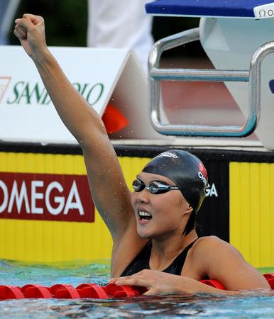中國女將趙菁今天在羅馬世界游泳錦標賽以世界紀錄,摘下女子50公尺仰式金牌。