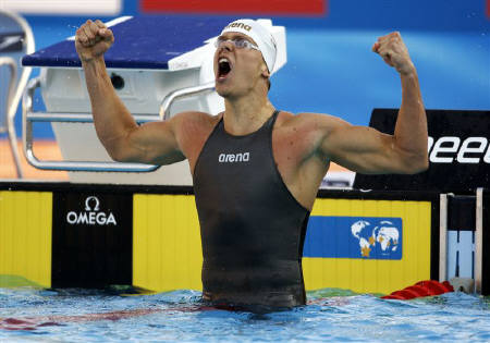 巴西泳將西耶羅(Cesar Cielo)今天打破世界紀錄,在羅馬世界游泳錦標賽男子100公尺自由式奪冠。