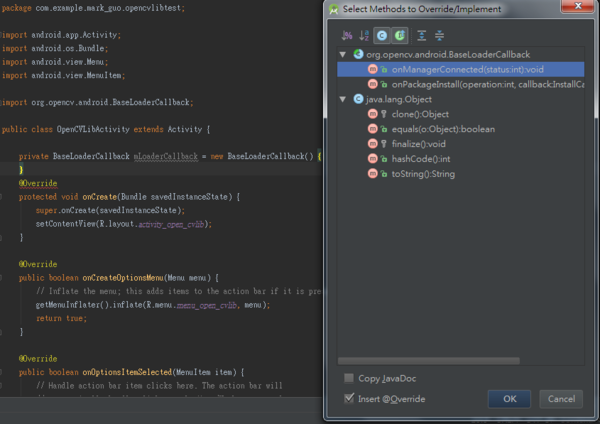 修改public void onManagerConnected(int status)內容如下
