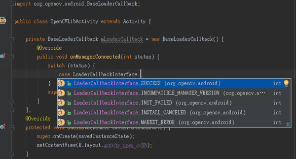 private BaseLoaderCallback mLoaderCallback = new BaseLoaderCallback(this) {