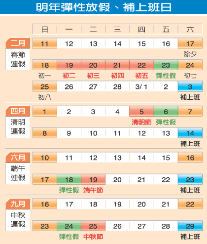 做為一個上班族除上班打卡,中午吃飯及下班打卡三件大事外,另外一件重要的事情就是安排休假,特別是出現國定假日彈性連休的安排格外重要,因此特別蒐集2007年彈性休假時程表供各位勞苦功高的上班戰士參考!![]()