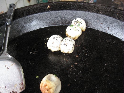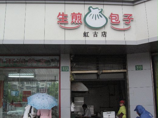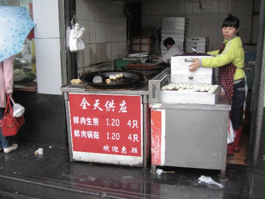 4/17開完戶也拿到ATM卡及存摺後,重要的事情完成後,開始延著水城南路走到虹古路口時,走著走著快要中午了肚子也餓了,在路口回頭一看,有個生煎包連鎖店就叫生煎包子,才剛起鍋,覺得好像不錯吃,就買了一些生煎包來吃;這家生煎包的包子比較小,但是咬下去後湯汁流出來,鮮肉香味四溢,相當不錯吃,而且四個包子1.2元,當零食相當實惠,不過我猜很多台灣人因為考慮衛生,所以不太敢買,我的想法是既然到了當地,吃吃當地人會買會吃的小吃,而不是在大餐廳吃,風味更棒