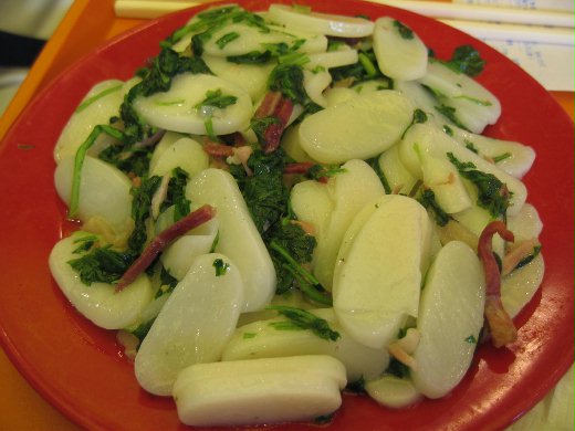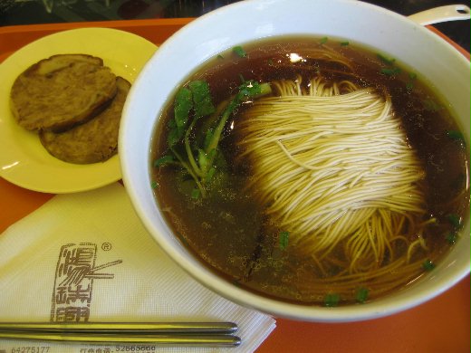 鴻瑞興位於上海體育館區域內的一棟大樓中,其中一樓是當地人常去光顧的麵食餐廳,二樓則是比較正式的餐廳,今天(4/20)再參觀完上海植物園後,搭上植物園對面到徐家匯的公交車(即公車)坐到上海體育館附近,走進體育館後找區內最高的建築物就是鴻瑞興了;我叫了一晚招牌燜蹄麵,友人則叫了炒年糕,原則上燜蹄麵的燜蹄一但放進湯麵中,一下子就散開來,所以建議大家吃的時候,可以試試放進湯麵一起吃與分別吃兩種方式