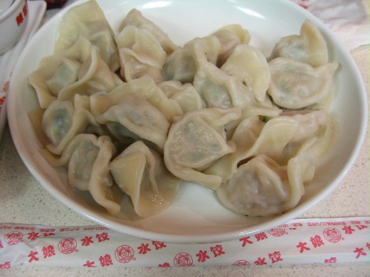 大娘水餃在上海算是有名的連鎖店,不過每次都是吃完飯後才看到大娘水餃的招牌,所以也都沒機會到大娘水餃店去嚐嚐味道;這天剛好到徐家匯附近看房子,走著走著眼前出現一家大娘水餃,心想這回總算可以試試本地一家知名連鎖店的食物;當天是下雨天,人也蠻多的,反正就是排隊而已,心想可以好好享用一下美食,到二樓去找座位的時候,裡面的空調不知是不夠還是根本沒開,同時又有很多人站著在等位子,準備吃飯的心情已經略受影響,好不容易找到位子,等到水餃端上來,天!怎麼比想像中要來得小,餡一咬下去,心中就想,比起我在古北一期那邊站著吃的生煎包還不如,果然是見面不如聞名!