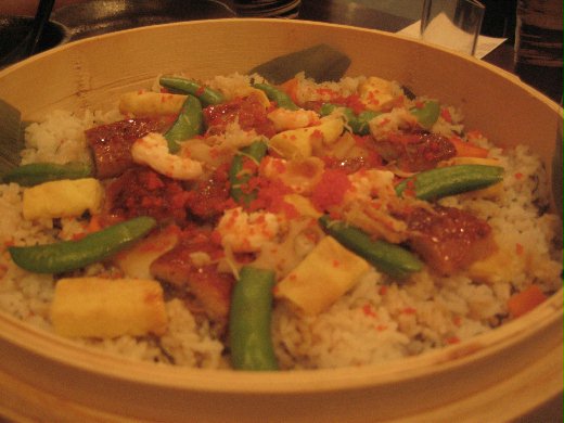這是位於淮海中路及嵩山路近新天地的一家日式風格餐廳,店名叫蒸籠工房,開始還以為有生煎包或其它麵點,不過進來後才發現別有風味,其中比較特別的菜是蒸特色壽司,這是在台北沒有看過的菜,因為本地人對於生冷的日本壽司接受程度比較低,所以日本老闆配合上海人的口感進行改良;我要強調為何會進來這家店是因為站在門口招攬客人的李娟,李娟18歲從河南來上海工作,靦腆而純樸的李娟,態度自然而不做作的誠懇態度讓我們印象深刻,這是我到上海這麼久以來,第一次感受到餐飲服務生的熱誠服務,只是單純地為餐廳以最大的誠意吸引客人,希望大家有機會可以造訪這家餐廳,也多給這個李娟多一些鼓勵