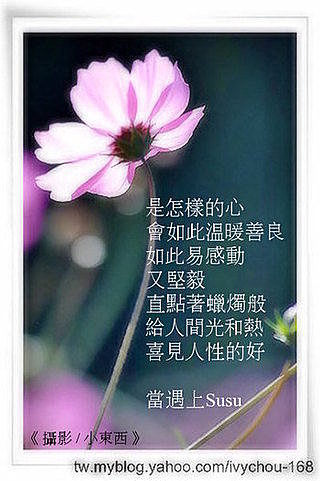 - 1樓. 馬克電扇2013/09/16 23:05Tracy: 有同感哦,寫得真好! 讓我們為大家喜愛的susu鼓鼓掌!!