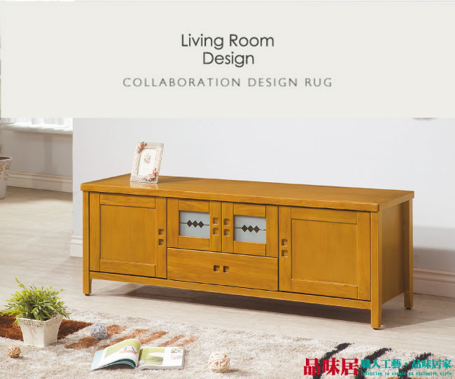 2017家具展 【品味居】胡納 檜木紋5尺實木收納櫃/電視櫃(二抽屜+四門櫃設計)