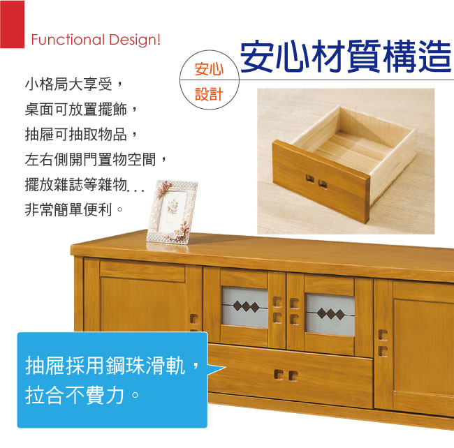 【品味居】胡納 檜木紋5尺實木收納櫃/電視櫃(二抽屜+四門櫃設計) 評價
