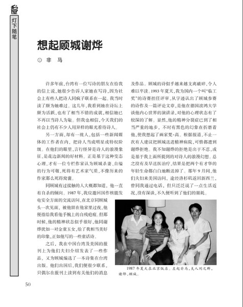 散文〈想起顾城谢烨〉刊登于《书屋》