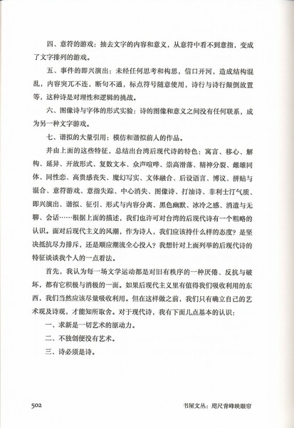 随笔〈诗人与后现代〉刊登于《咫尺青峰映眼帘》(书屋文从)