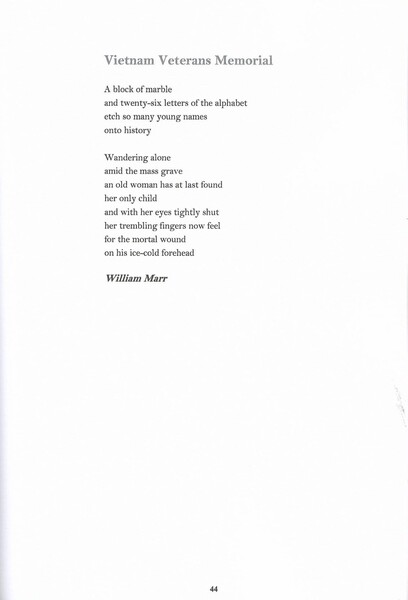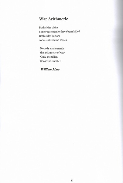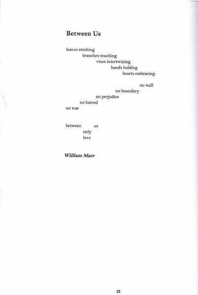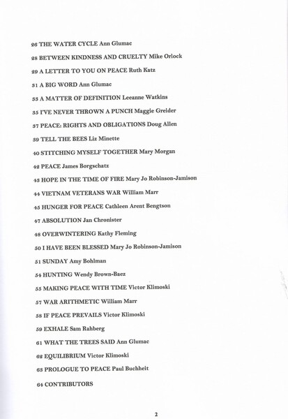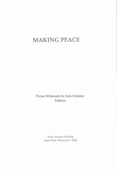 Three poems: Between Us, Vietnam Veterans Memorial, and War Arithmetic, appeared in MAKING PEACE, Poems and Essays, Victor Klimoski & Ann Glumac, Editors. Prior Avenue Printing, Saint Paul, Minnesota *2026