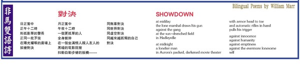 漢英雙語詩〈對決〉刊登於《芝加哥時報》2026.1.30 對決 日正當中 正午十二時 形孤影單的警長 正同一批歹徒 在陽光耀眼的廣場上 拔槍對決 月正當中 午夜十二...