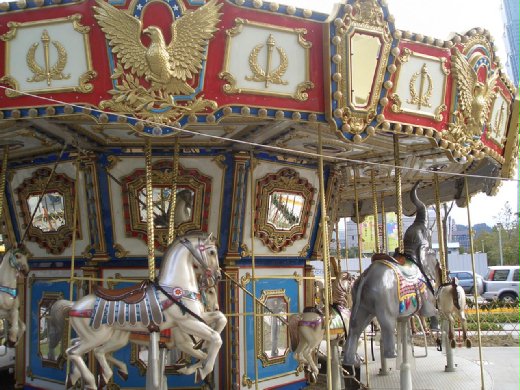"咦...旋轉木馬怎麼會有象...?而且牠背上還配了一副馬鞍..."