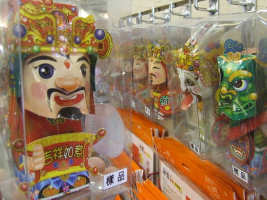 A4紙張大小的神仙公仔,銷路最好的是「財神爺」,有些店面老闆把公仔組裝後,擺在店門口的櫃臺上,象徵「招財進寶」作用;媽祖公仔以慈眉善目的面貌,有穩定人心、保佑平安之意。